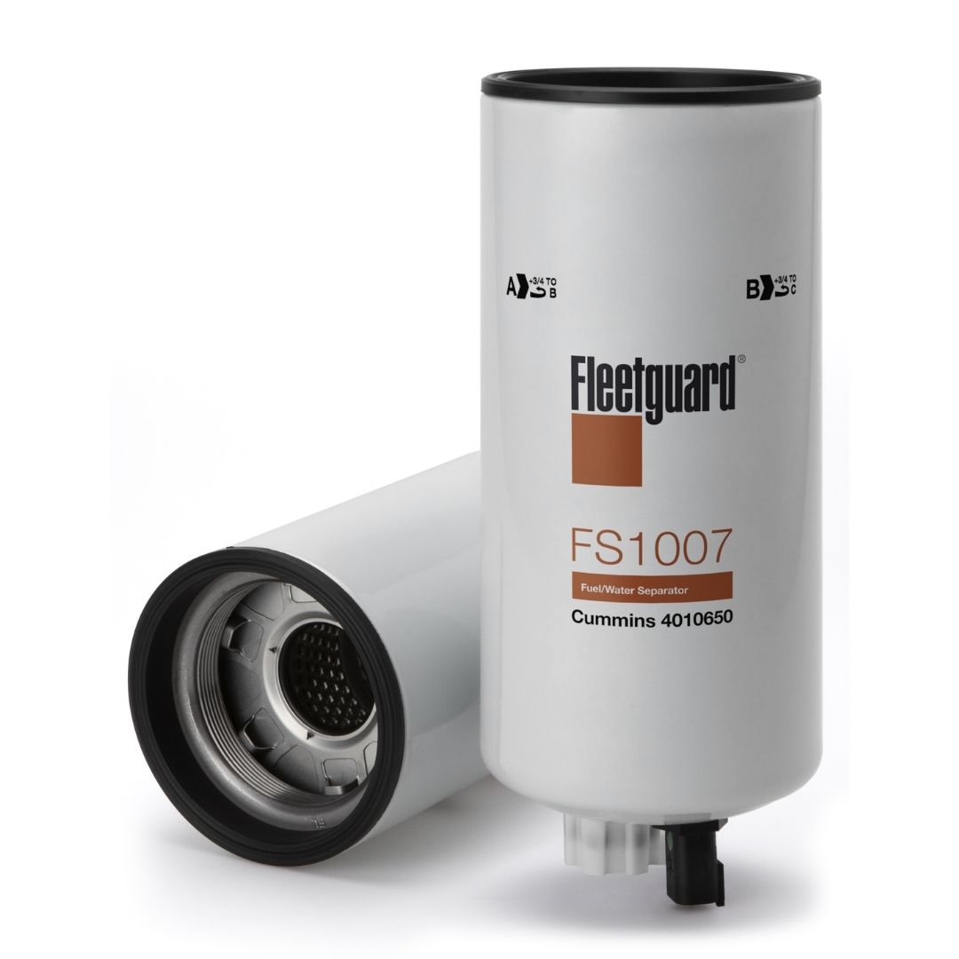 El separador de agua y combustible premium enroscable Fleetguard® FS1007 funciona para eliminar el agua y otras partículas y garantiza que se entregue combustible limpio a su motor.