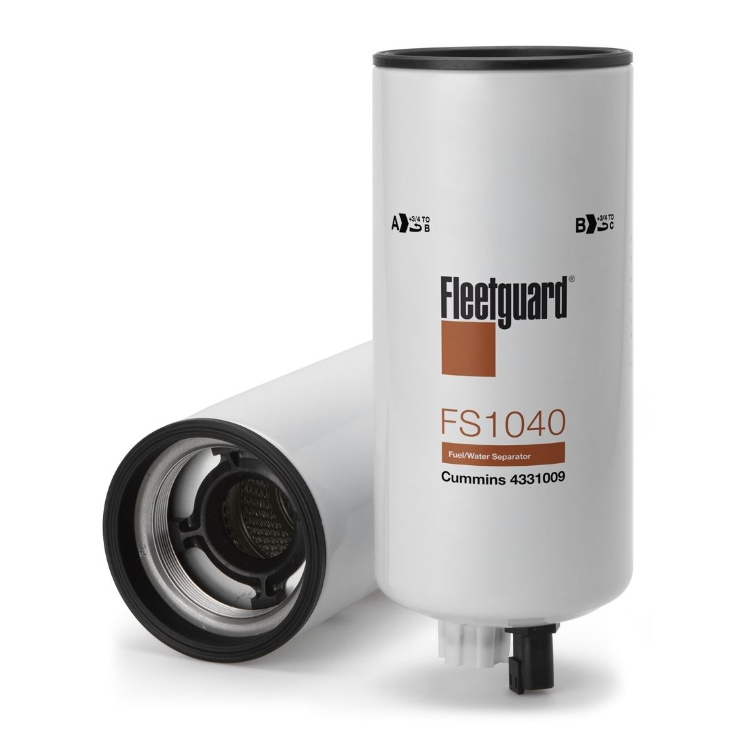 El separador de agua y combustible enroscable Fleetguard® FS1040 funciona para eliminar el agua y otras partículas y garantiza que se entregue combustible limpio a su motor.