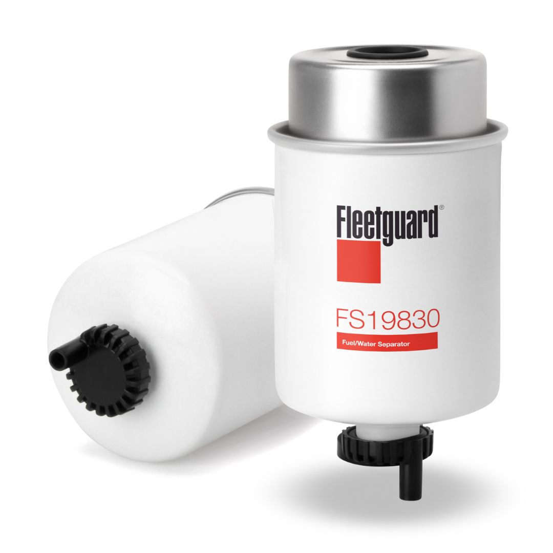 El separador de agua y combustible premium enroscable Fleetguard® FS19830 funciona para eliminar el agua y otras partículas y garantiza que se entregue combustible limpio a su motor.