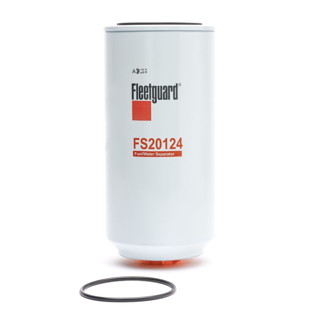 El separador de agua y combustible enroscable Fleetguard® FS20124 funciona para eliminar el agua y otras partículas y garantiza que se entregue combustible limpio a su motor.
