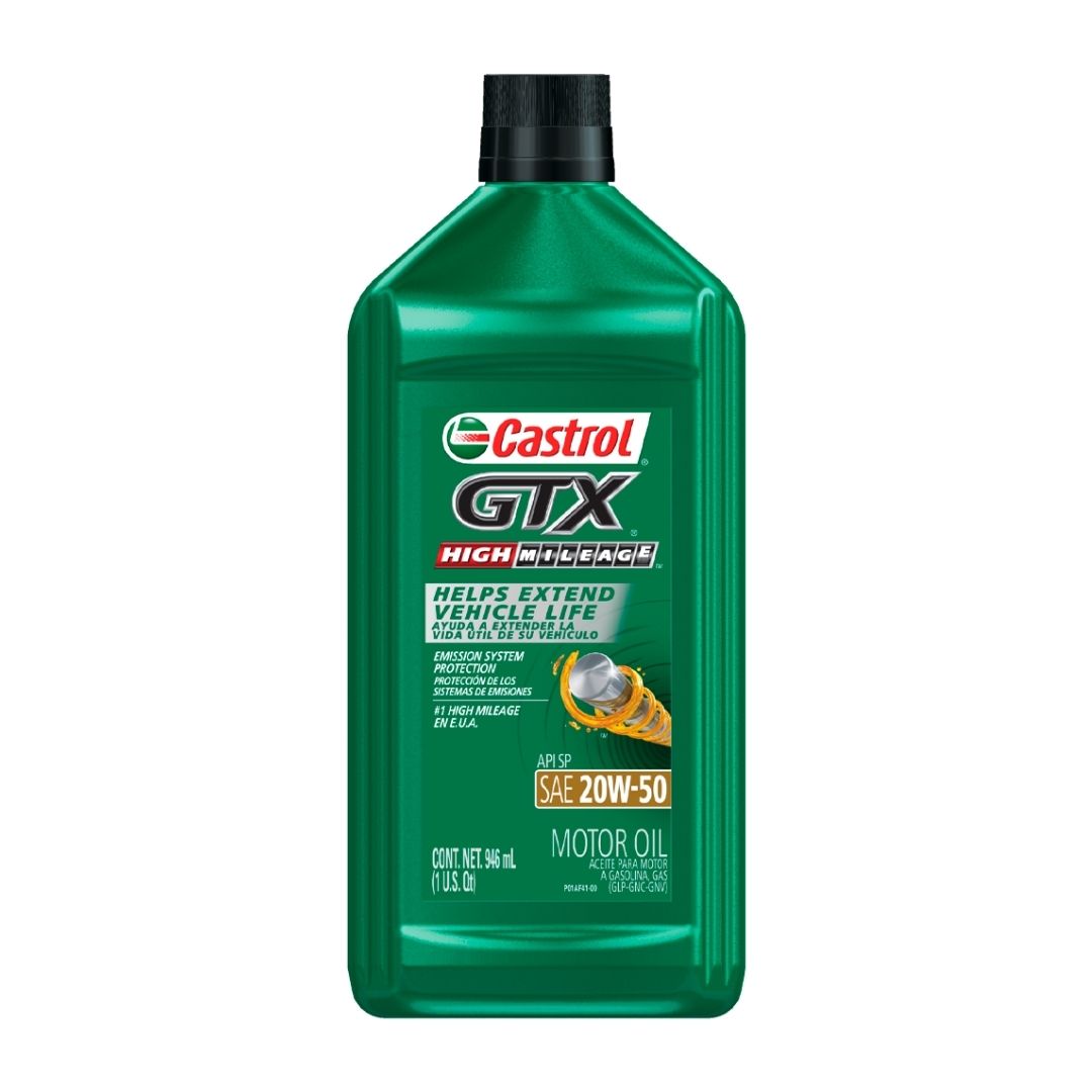 El Castrol GTX High Mileage 20W-50 está especialmente formulado para motores con alto kilometraje, ayudando a reducir el desgaste, minimizar fugas y prolongar la vida útil del motor.