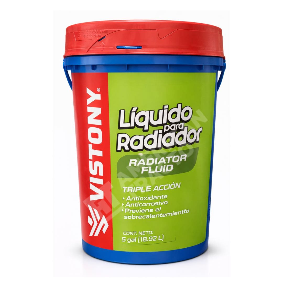 El Líquido Radiador Rojo 5GL de la marca Vistony es un refrigerante formulado para brindar excelente protección al sistema de enfriamiento del motor. Su composición evita la corrosión, la formación de óxido y la acumulación de sedimentos, garantizando una temperatura óptima de funcionamiento. Diseñado para condiciones exigentes, prolonga la vida útil del motor y contribuye a un rendimiento eficiente y seguro del vehículo.